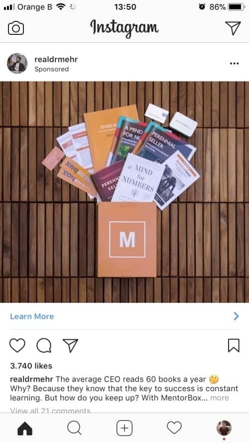 « Le PDG moyen lit 60 livres par an. Pourquoi ? Parce qu’il sait que la réussite passe par l’apprentissage. Mais comment tenir le rythme ? Avec MentorBox… »