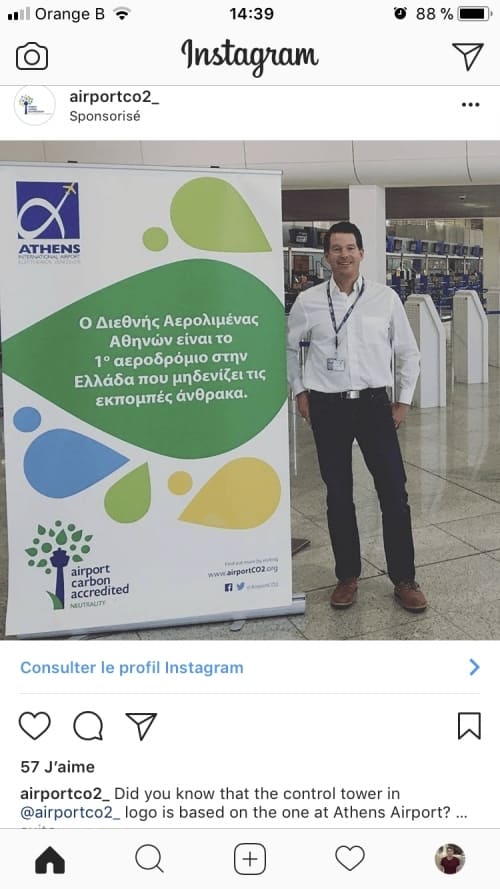 L’appel à l’action « voir le profil Instagram » ne s’accorde pas avec la description juste en dessous. On mentionne une tour de contrôle de l’aéroport d’Athènes, mais le lien avec l’appel à l’action reste flou.