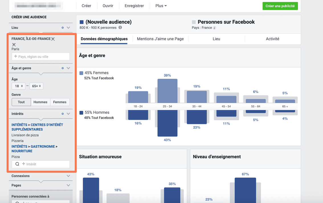 Pour trancher, je consulte Audience Insights pour mieux cerner les fans de pizza à Paris.