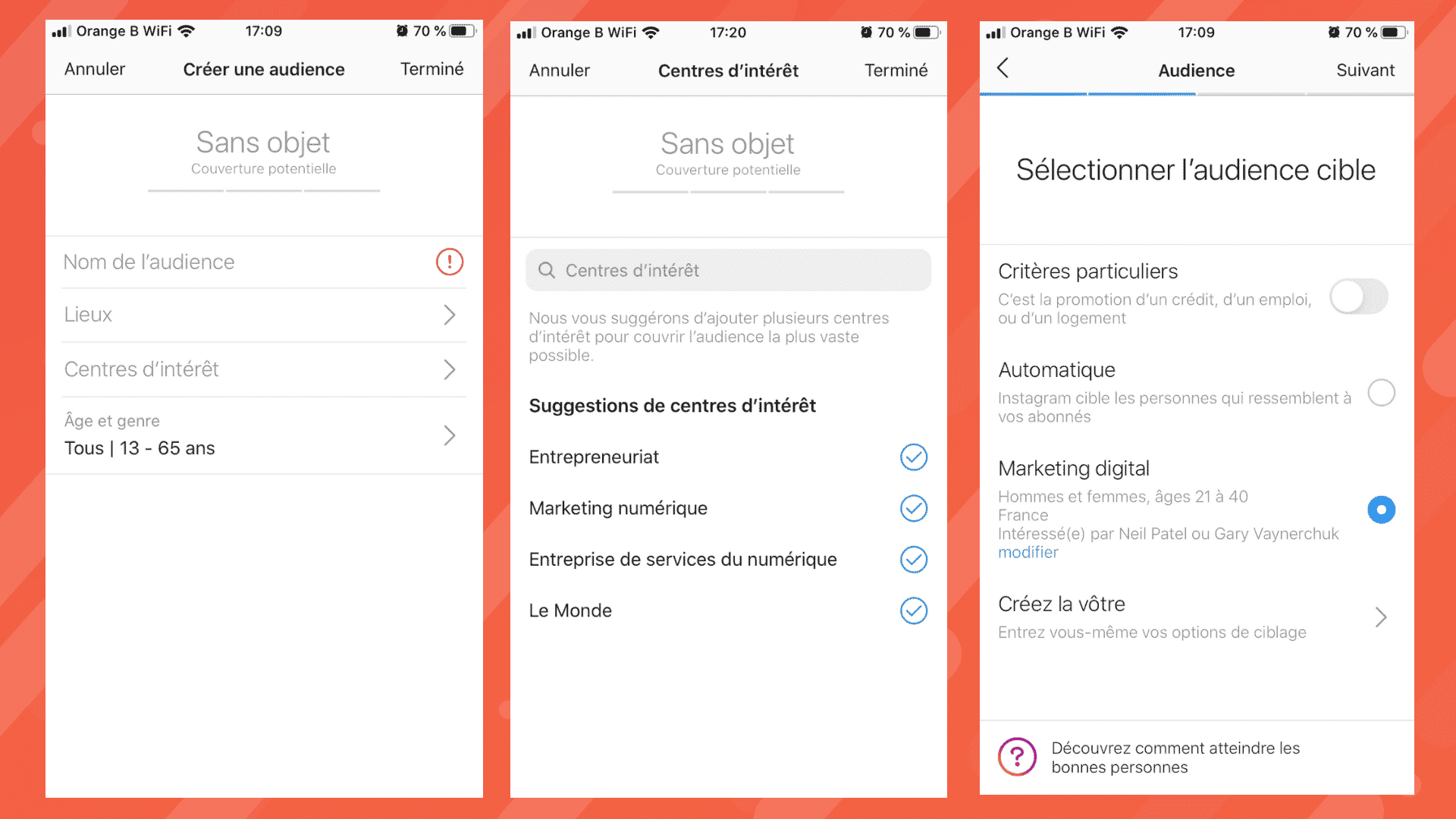 Toutes ces étapes détaillent, clic après clic, la création d’une publicité sur Instagram.