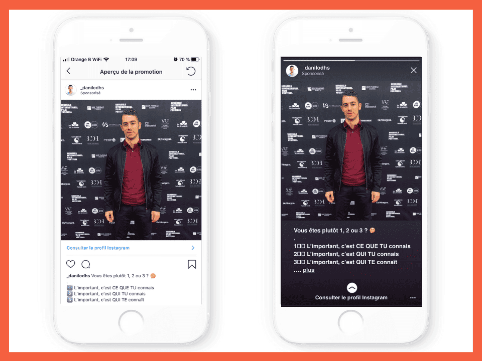 - Les publicités Instagram reprennent le format des publications classiques