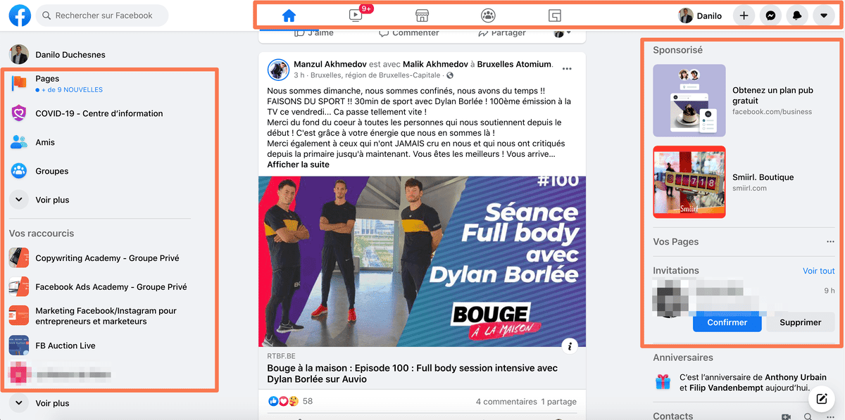 Les publicités dans le fil d’actualité