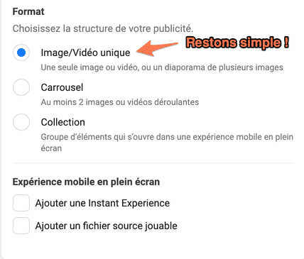 Pour cet exemple, restons sur le format « image unique » présenté plus haut.