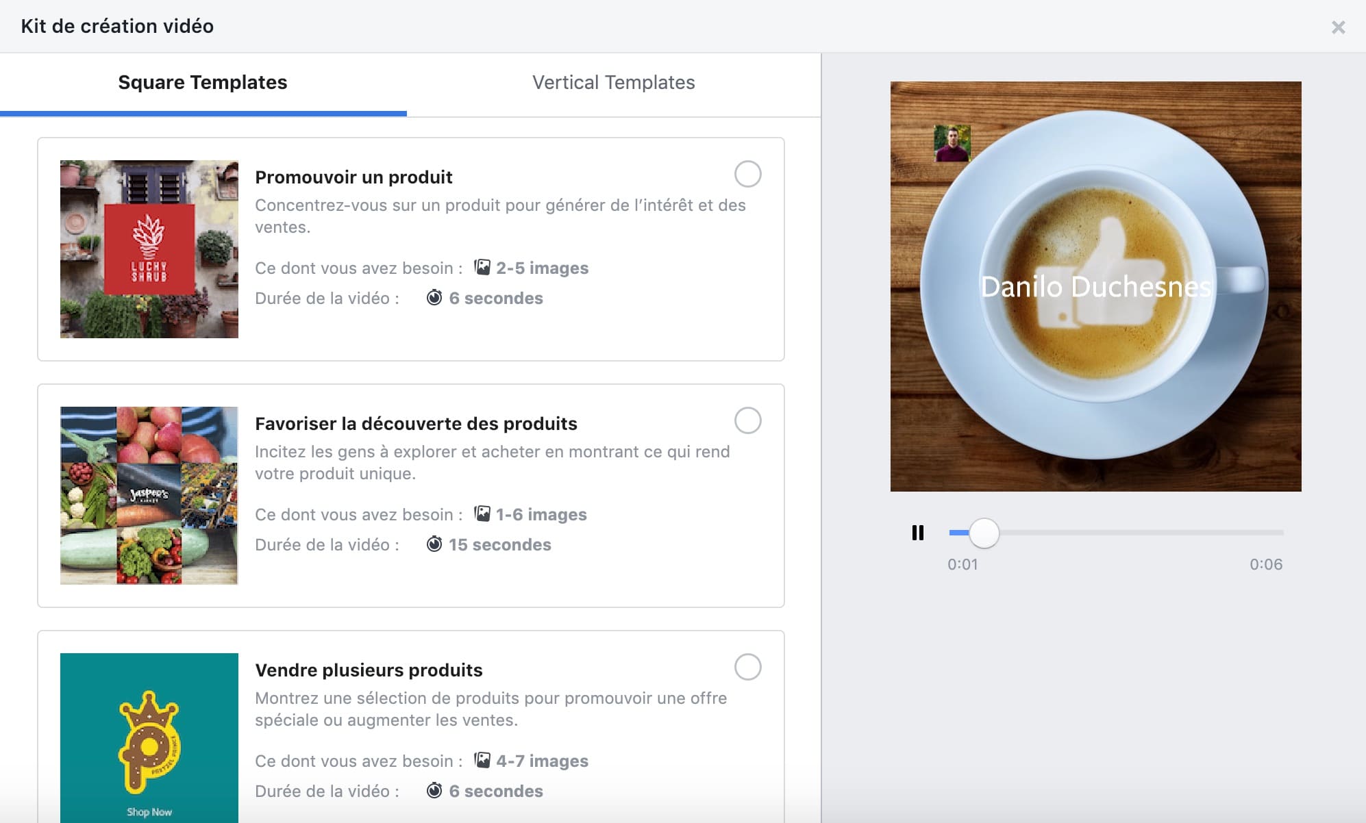 Facebook propose aussi un kit de création vidéo intégré pour concevoir des diaporamas encore plus aboutis à partir de simples images.