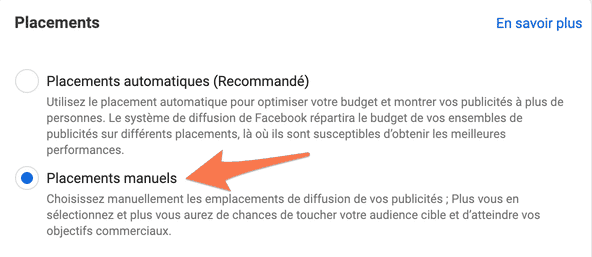 Vous pouvez tout de même choisir manuellement les emplacements, mais Facebook recommande généralement de rester en automatique.