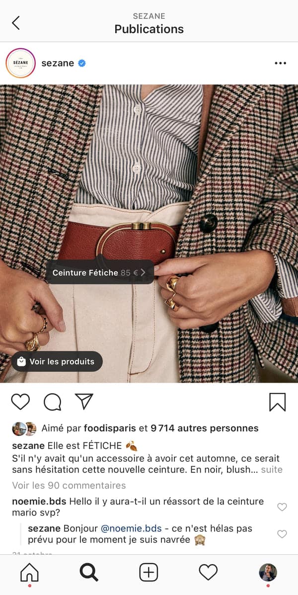 Sur Instagram, l’interface est plus épurée :